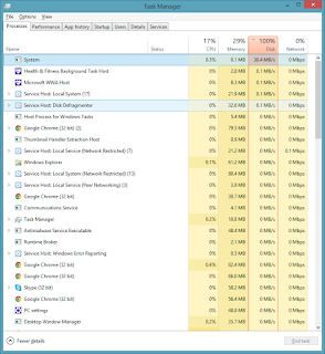 අපේ යාලුවන්ට අද දෙන Post එකත් ගොඩක් වැදගත් වෙයි. මොකද මේ Post එක ඔබේ පරිගණකයේ Hard Disk එක Heat වීම සම්බන්ධව ඍජුවම බලපාන නිසා.. ඉතින් මේ ගැටලුව Windows 8 / 8.1 භාවිතා කරන ගොඩක් අය දැකලා ඇති. .විශේෂයෙන් Laptop භාවිතා කරන අය.. Hard Disk Usage එක 100% වෙලා, පරිගණකය රත් වෙනවා, යම්කිසි ශබ්ධයක් ඇති වෙනවා, පරිගණකය Struck වෙනවා...